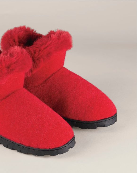 Wrap your feet in all-day warmth and comfort with our ultra-cozy slipper booties. Featuring a plush faux-fur lining and insole, these pull-on felt booties keep your toes toasty. Available in Black or Red.