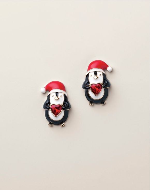 Too cute to resist! Show off your holiday spirit with delightful earrings featuring charming holiday characters. Each pair sparkles with a touch of glass stone shimmer and colorful enamel detail, set in a radiant goldtone finish. They’re the perfect little pick-me-up for winter days. Available in two styles: Reindeer or Penguin.