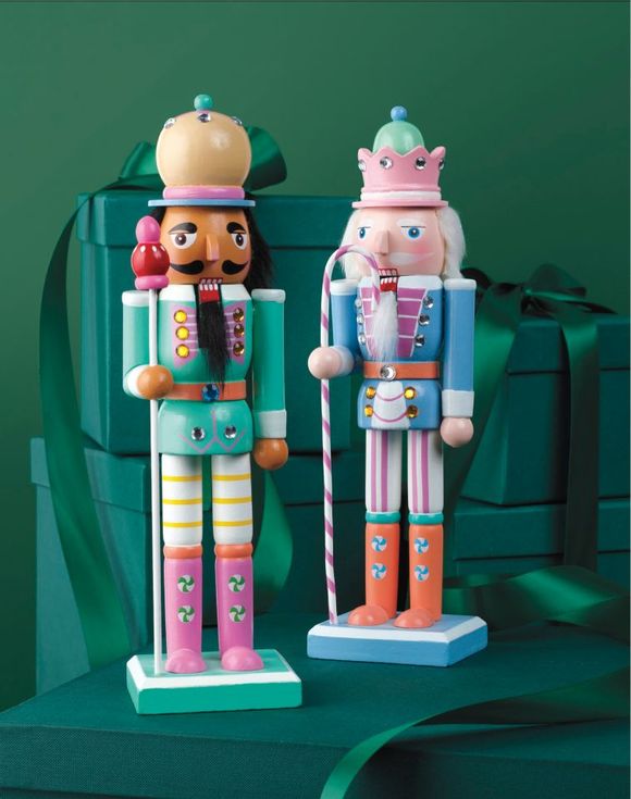 Our colorful guardsmen stand watch and add some holiday whimsy to your mantel. 2 ¼" W x 2 ¾" D x 10" H. Imported.
