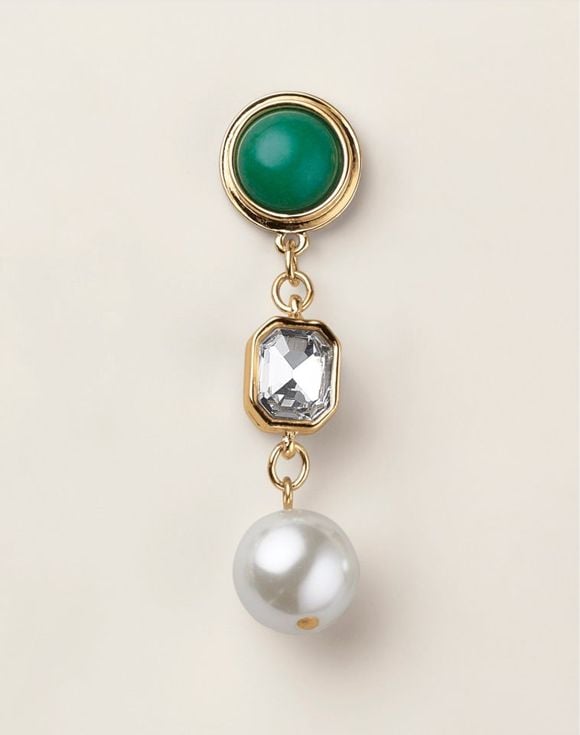 A graceful hint of sparkle. Shimmering pearl-like beads mingle with deep green accents and sparkling crystal glass, all set in warm goldtone, creating a look that’s both elegant and enchanting.