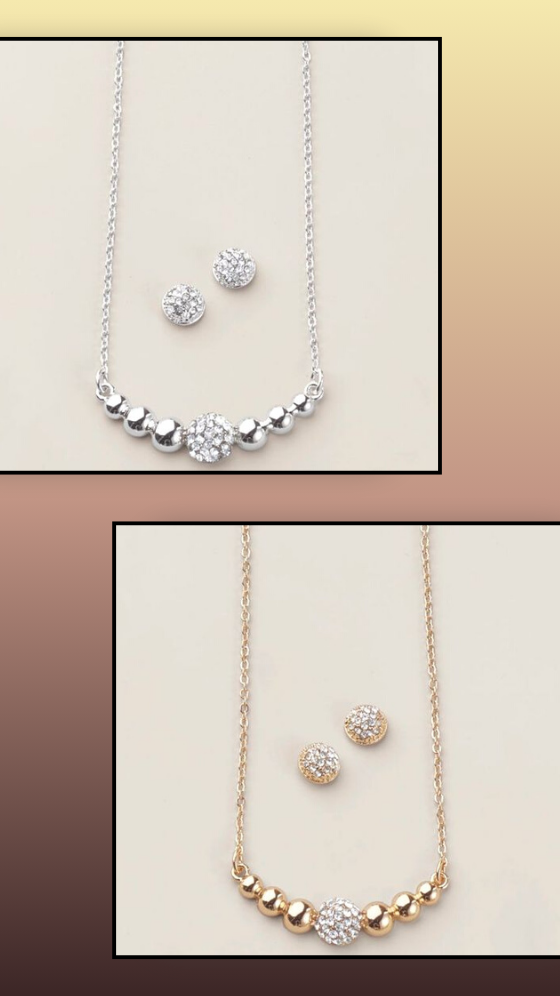 Sparkle from every angle with this matching necklace and earring set. Features pavé crystal stones in gleaming goldtone or silvertone for a dazzling finish.