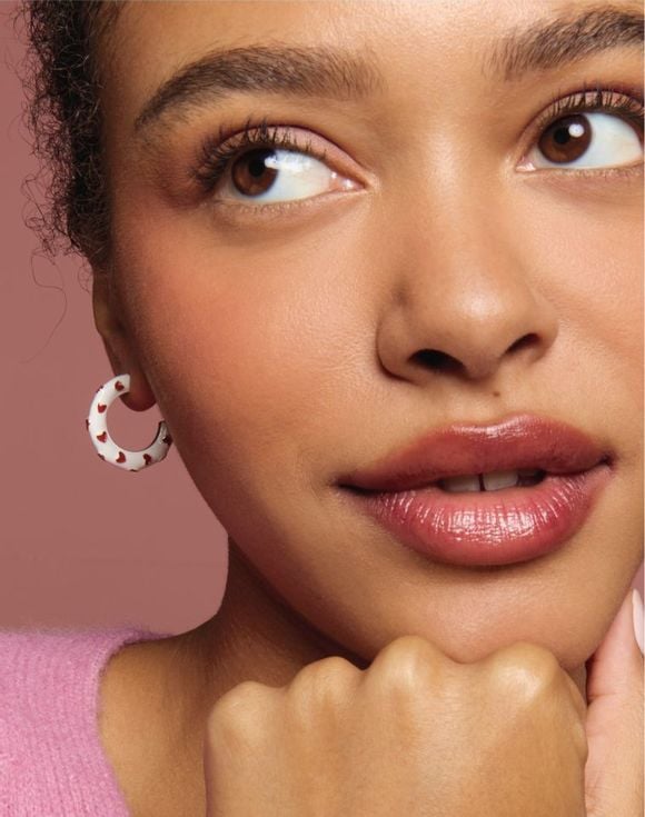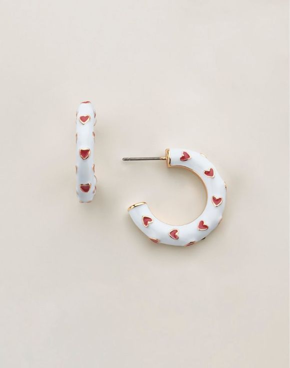 Sweet and flirty, this playful version of classic hoop earrings is designed in white enamel and dotted with mini red hearts. Imported.