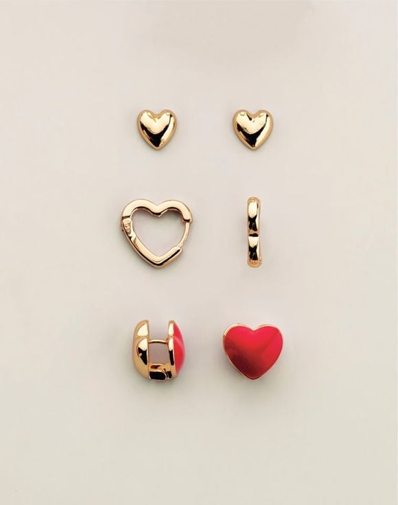 Share the love in every style. This three-pair goldtone set features red enamel, heart stud and open-heart designs—perfect for mixing, matching or gifting from the heart.