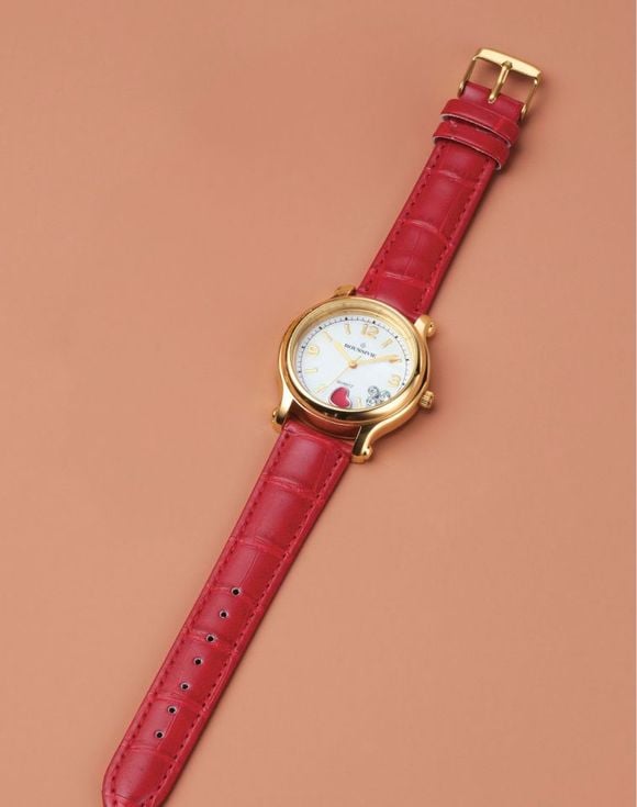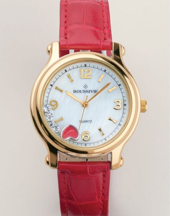 A timeless piece that speaks straight from the heart. The feeling of romance in motion is captured within a goldtone-framed dial housing floating heart and crystal charms paired with a vibrant faux-croc strap.