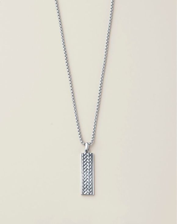 Strong style with a modern edge. A rectangular pendant detailed with a bold braid-like texture hangs from a durable stainless-steel chain—crafted to make a confident statement every day.