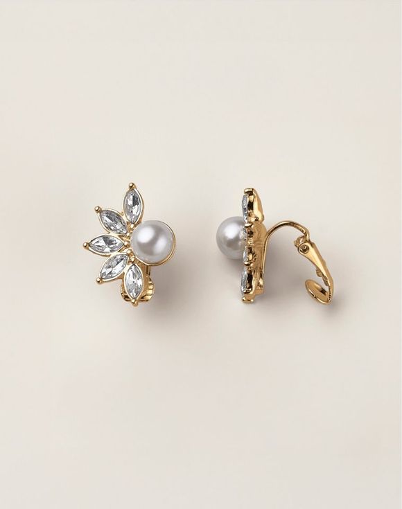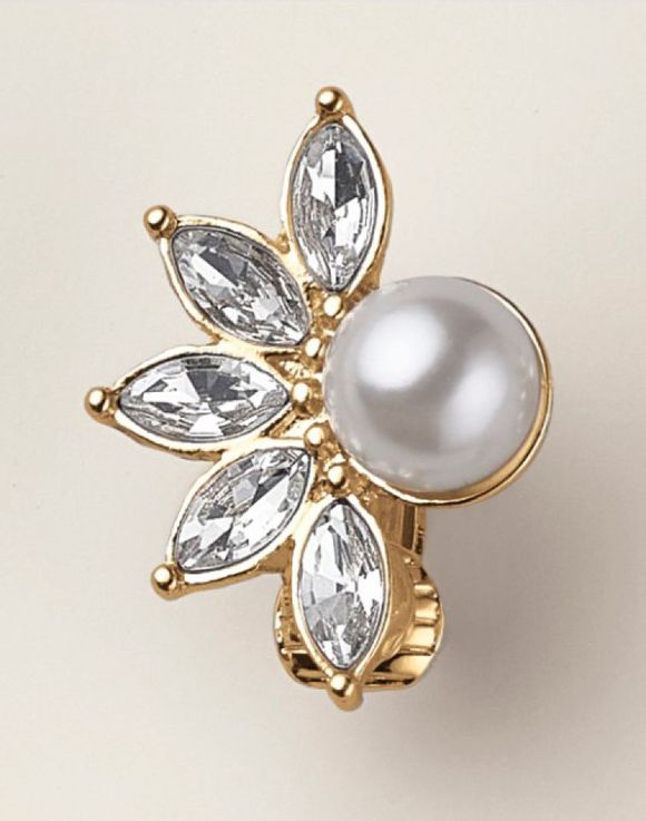 Delicate, dazzling and designed for comfort. Featuring lustrous pearlesque beads accented with sparkling marquise-cut crystal glass stones in a timeless goldtone setting. This clip-on pair is perfect for special occasions.