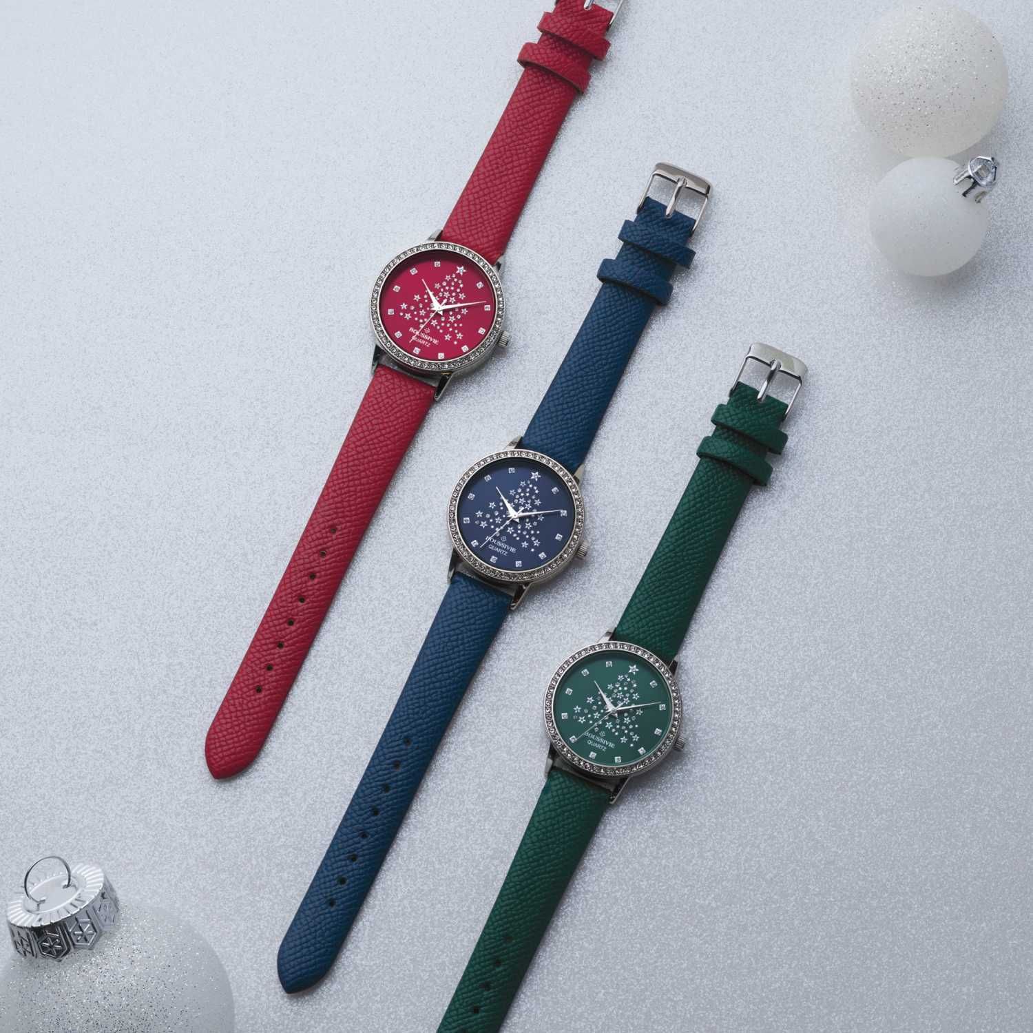 There’s always time to accessorize. Sparkling stones mimic the shape of a Christmas tree in this festive watch, perfect for everyday wear. Choose from three holiday-friendly hues: Red, Blue and Green.
