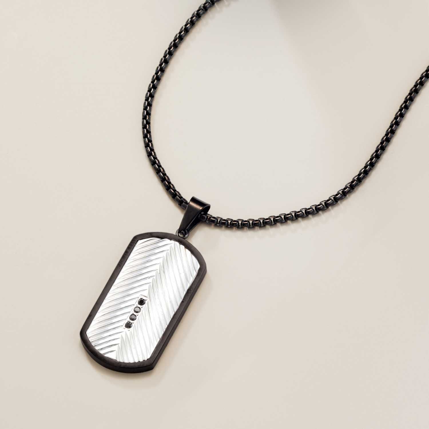 Men’s Stainless Steel Jet-Set CZ Dog Tag Necklace - FINAL SALE