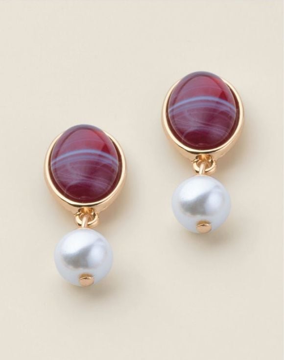 A timeless set that blends rich, earthy tones with graceful sophistication. Warm-colored, gem-like stones are paired with glassy pearl-like accents to create a look that feels both classic and naturally radiant. Set in a polished finish, this coordinating set sparkles with subtle drama and organic beauty to any outfit.