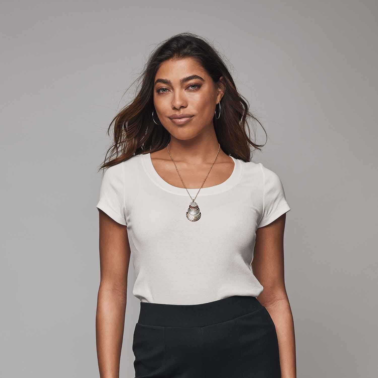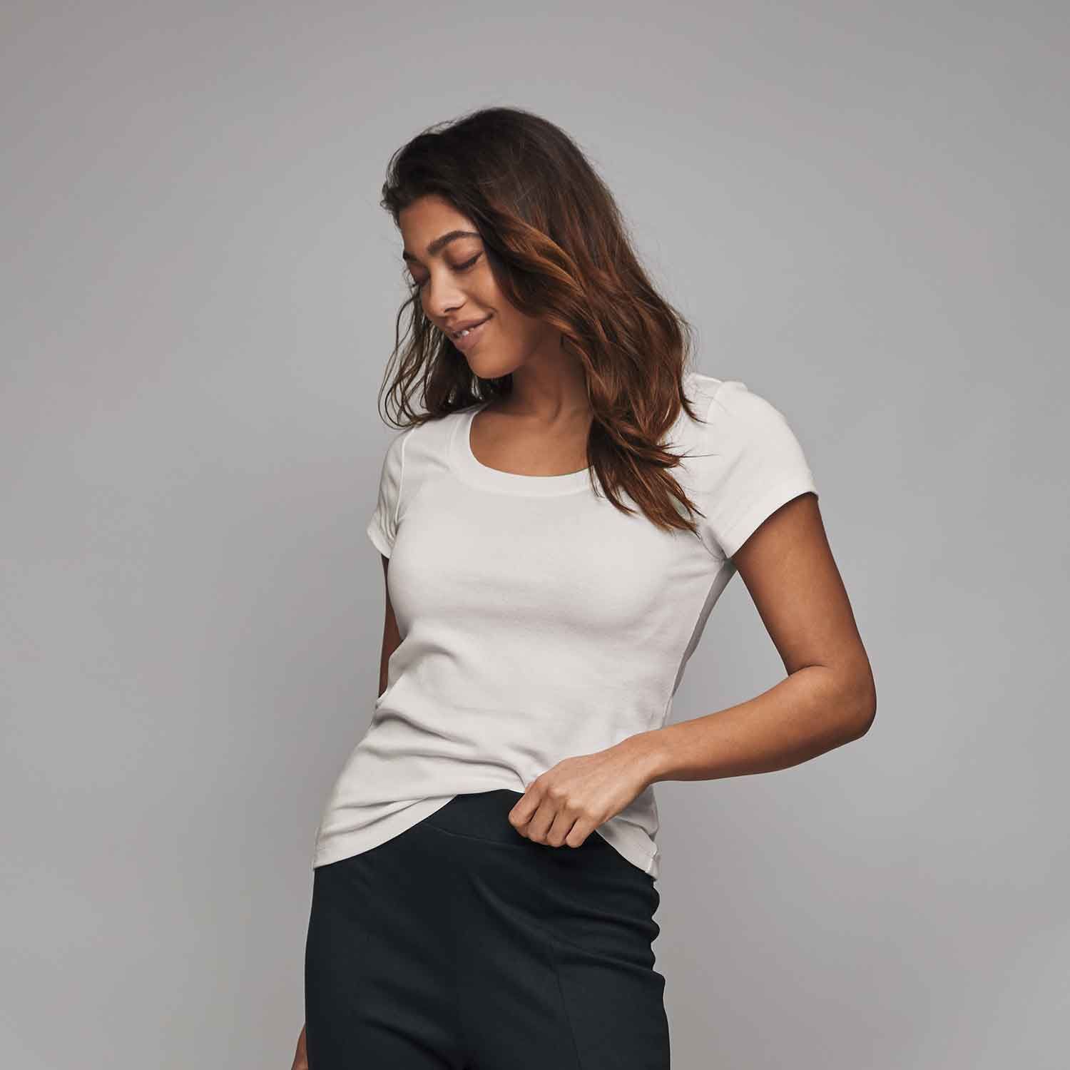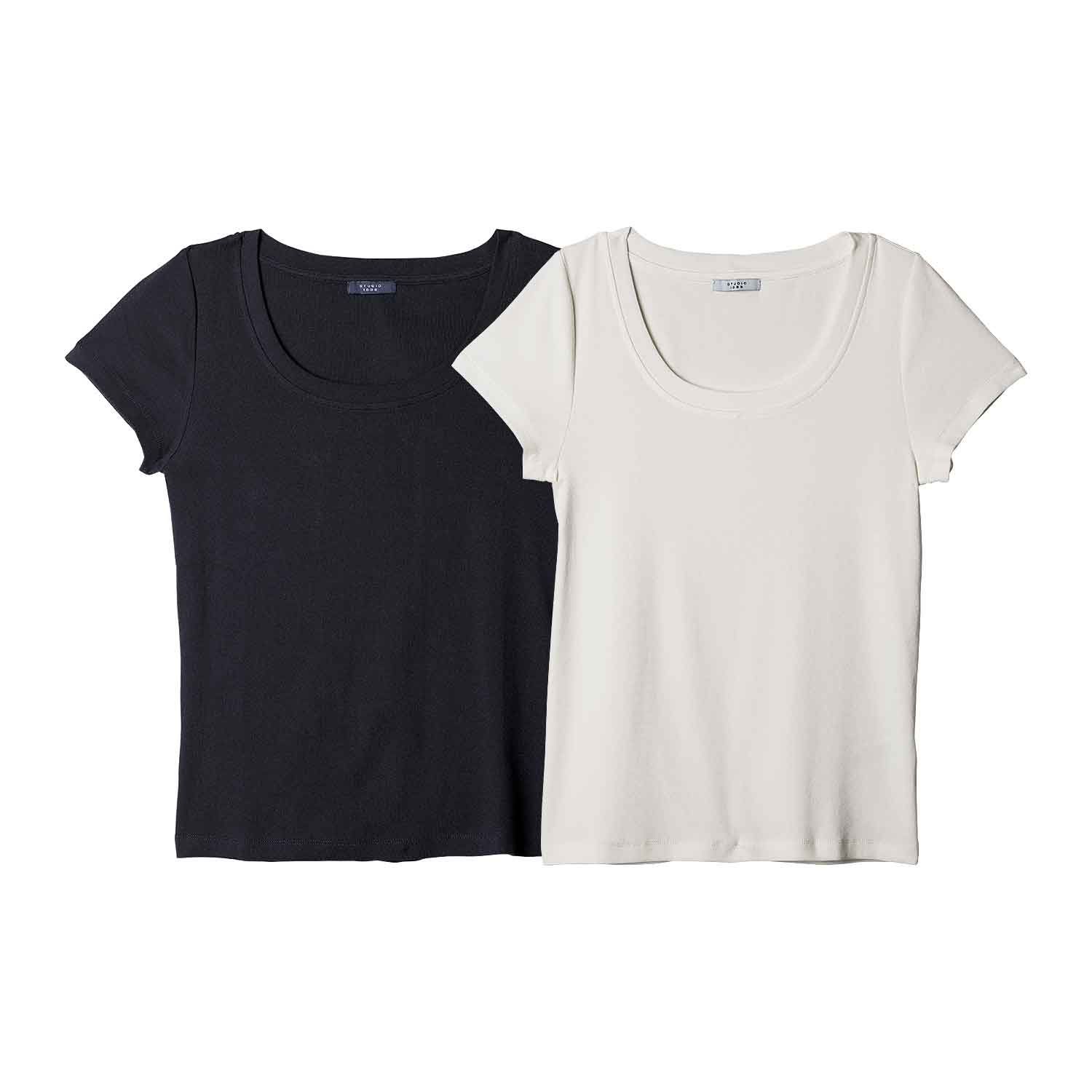 A certified closet staple, this multipack of rib knit t-shirts is available in white and black colors. Fitted tees with scoop neck and short sleeves. The comfortable fabric provides ample stretch. Center back length: 23" on M; 25" on 1X. Machine wash and dry. Imported
