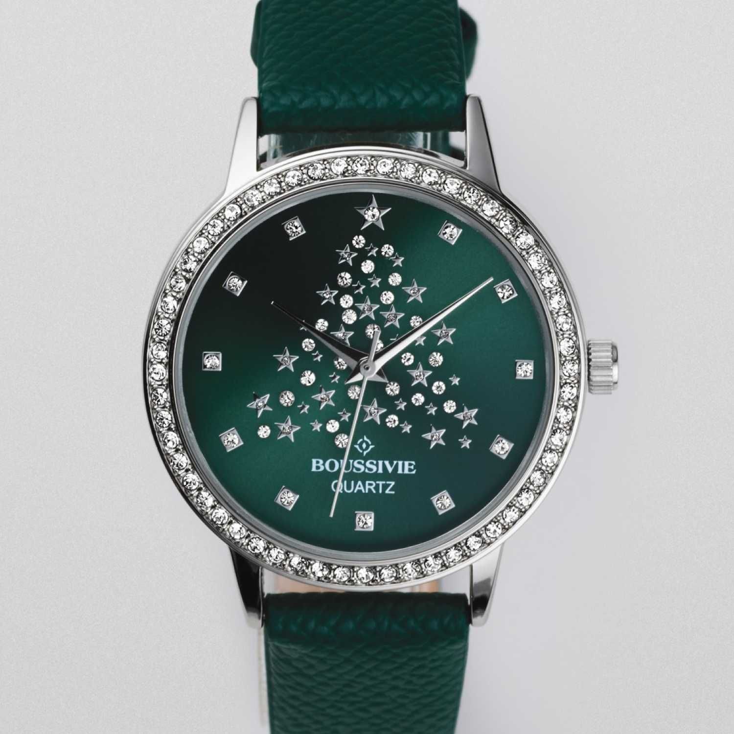 There’s always time to accessorize. Sparkling stones mimic the shape of a Christmas tree in this festive watch, perfect for everyday wear. Choose from three holiday-friendly hues: Red, Blue and Green.