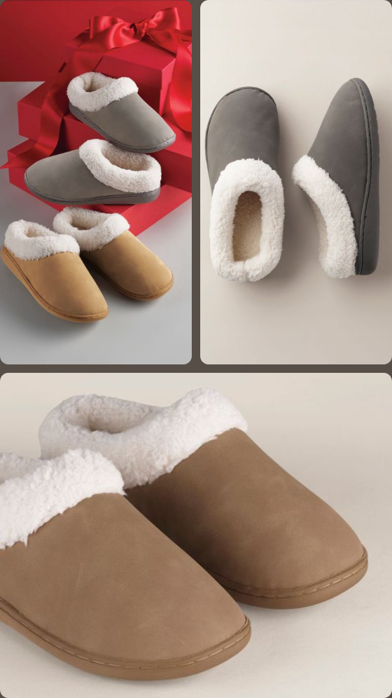 Comfort with every step. Suede-like mule slippers are lined with ultra-soft faux shearling to help toes stay warm and cozy, while the cushioned insole adds all-day comfort. Perfect for gifting—or keeping all to yourself! Available in Grey or Tan. Imported.