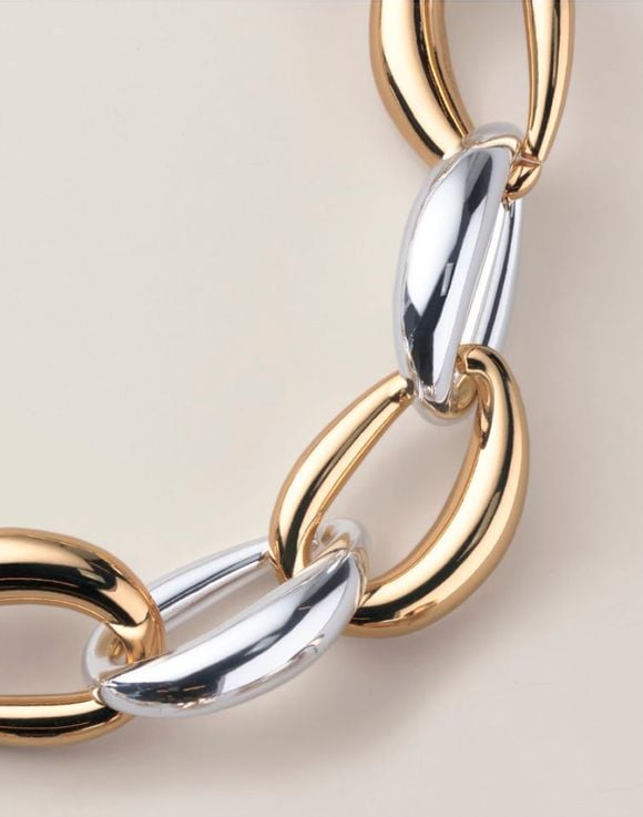 Make a powerful style statement with this eye-catching two-tone link necklace. Featuring bold goldtone and silvertone oval links, it adds instant polish and confidence.