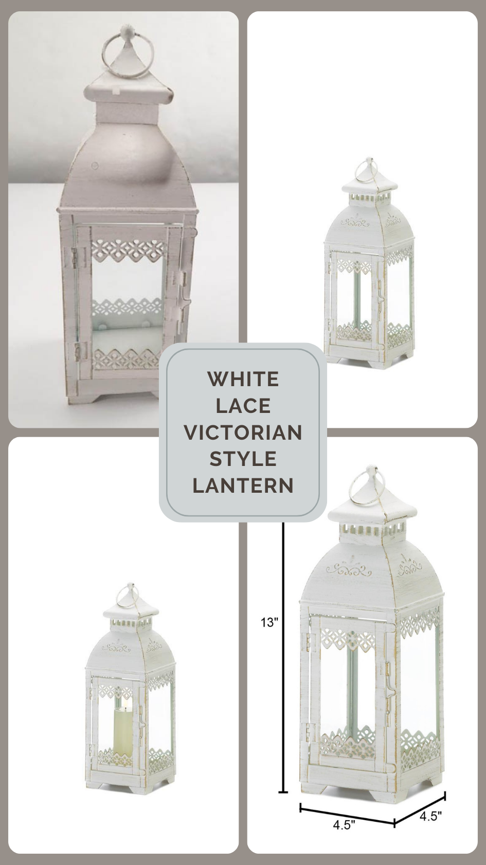-The decorative lantern features an iron frame in an antique-white finish with gorgeous white lace detailing. Perfect for farmhouse chic or French country decors, place your choice of candle or LED lighting inside the lantern with the easy to open front glass panels. Whether placed or hung, this lantern will illuminate your space in a stylish glow. #10018612