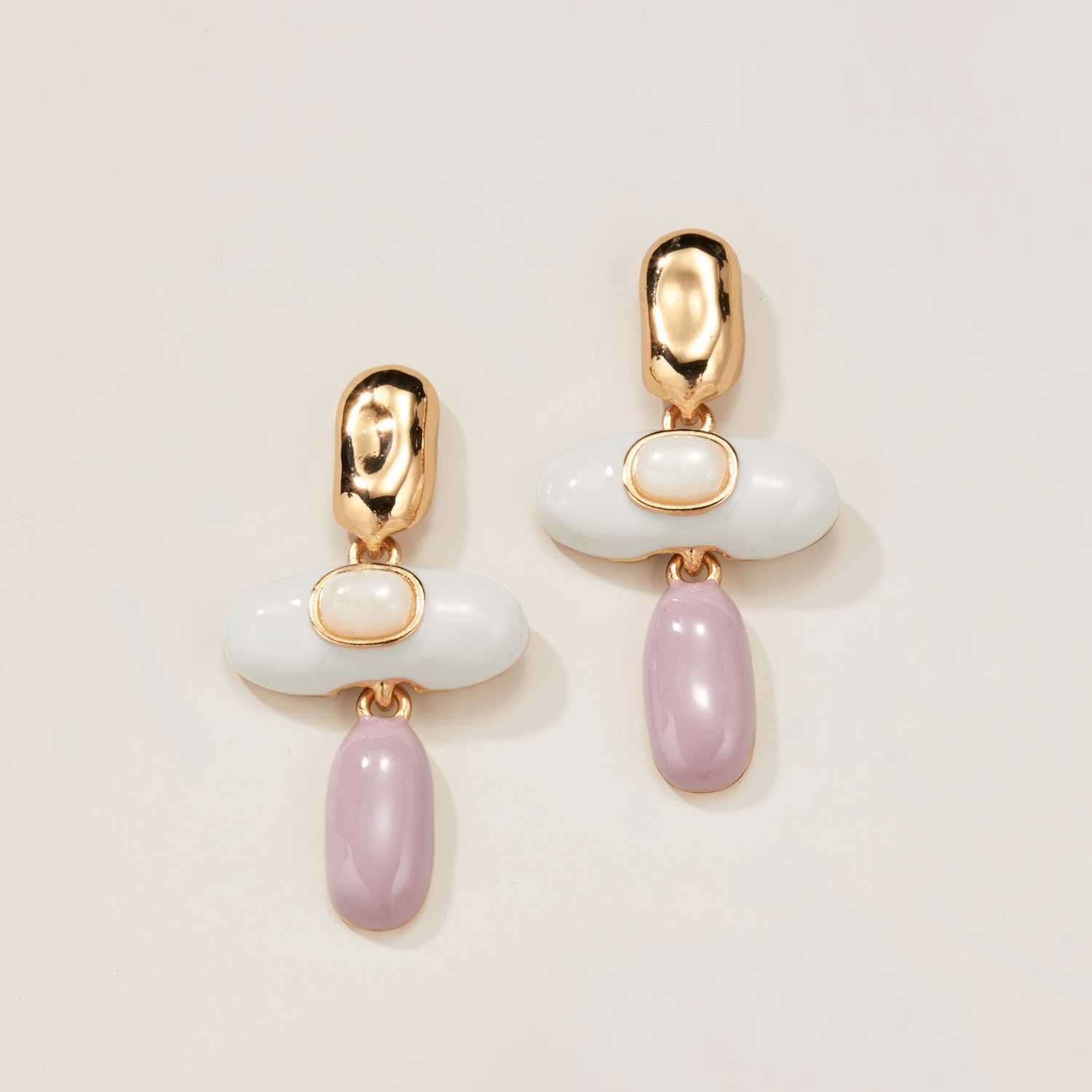 More than an accessory, these drop earrings are a work of art. A combination of goldtone, white quartz stones and rose-colored drops displays a gorgeous interplay of soft neutral tones. Matching ring and necklace are also available.