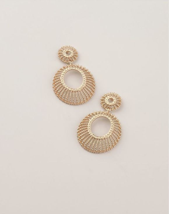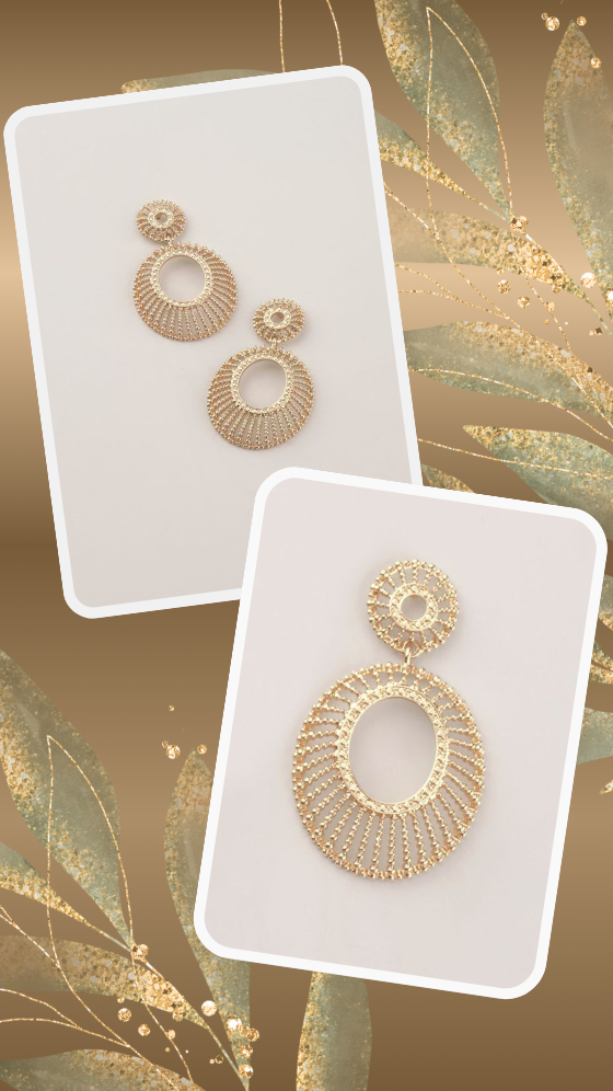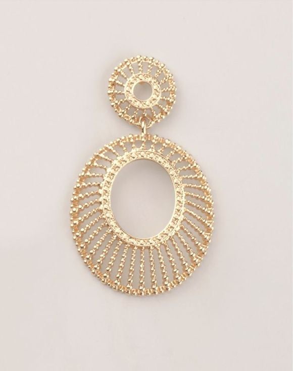 Complete your golden glow with a dazzling finishing touch. Featuring modern oval shapes and a striking sunburst pattern, these drop earrings are ideal for both everyday wear and special occasions.