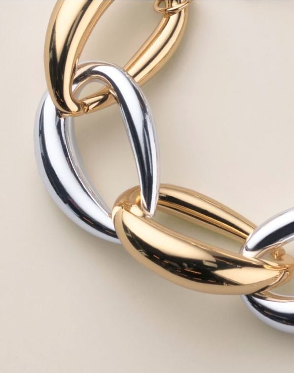 Double up on style with this chic two-tone link bracelet. A mix of goldtone and silvertone oval links gives your look a modern twist that’s both sleek and sophisticated.