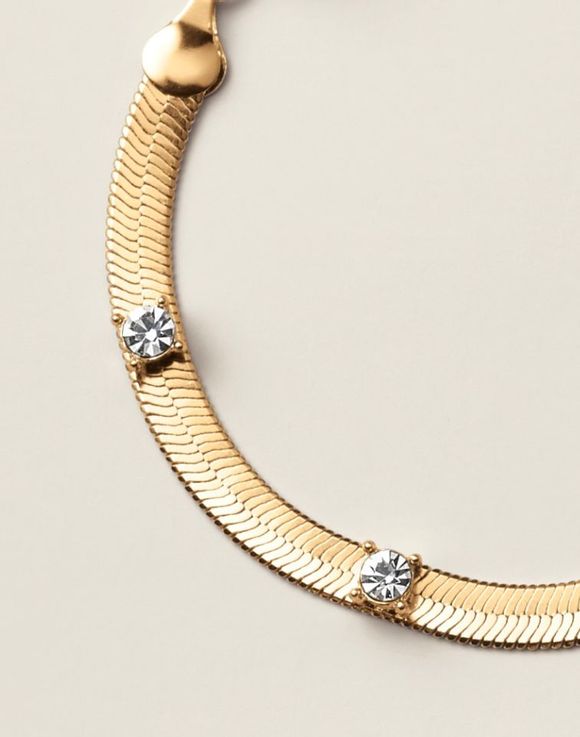 • Silvertone or goldtone snake chain with crystal station accents