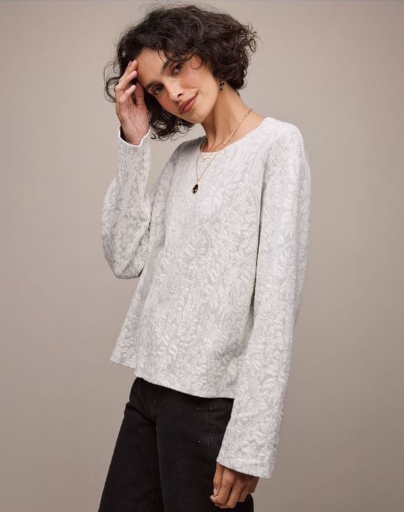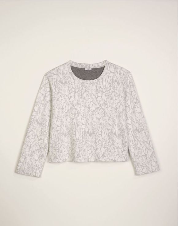 A pullover that embodies quiet luxury. Created with an intricate floral pattern to enhance its soft, dimensional look. Designed with a round neckline and long flared sleeves. Center back length: 21 ½" on M; 23" on 1X. Imported.