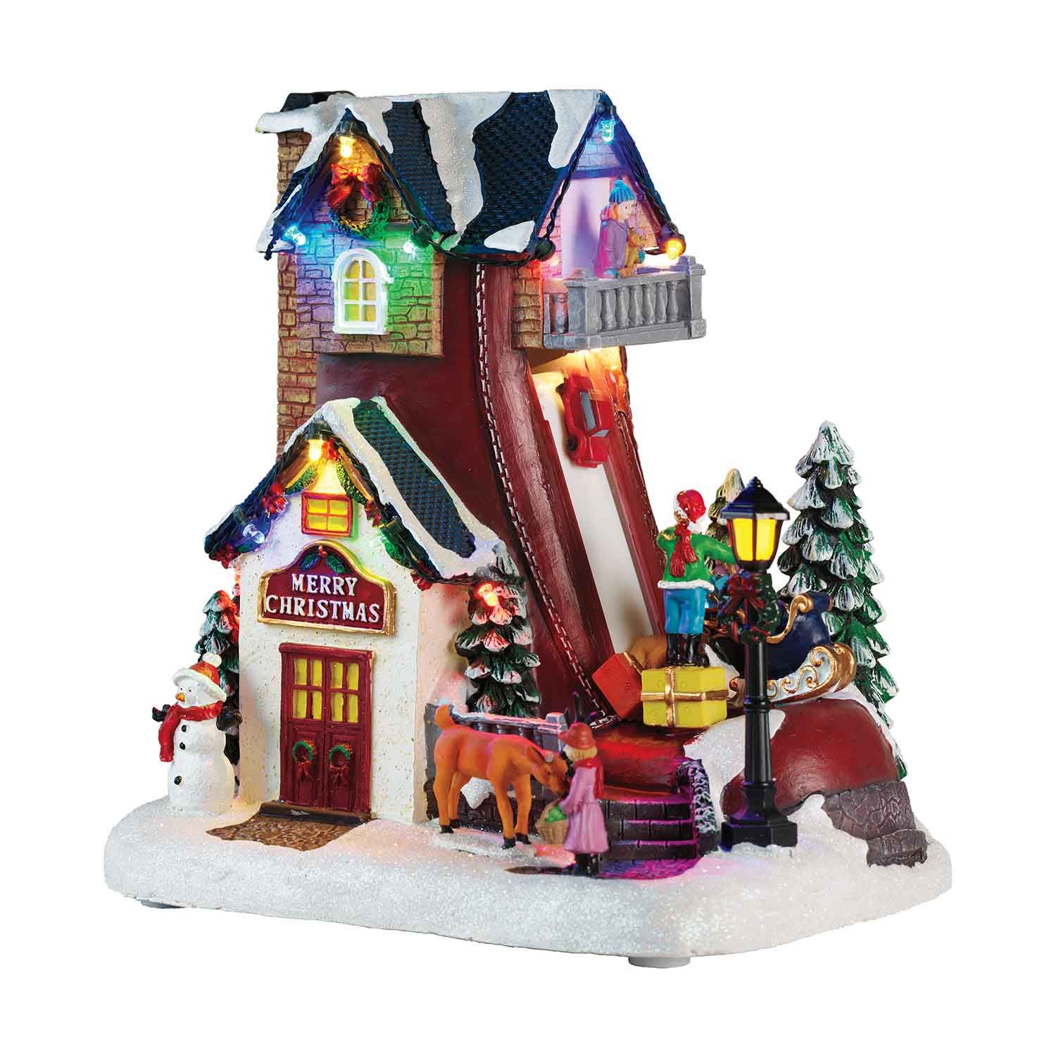 Santa and the elves are busy making gifts for all the good boys and girls! Gifts take a ride down the slide. Lights up and plays eight holiday tunes. Polyresin. 7 ¼" L x 5 ½" D x 8 ⅜" H. Imported.