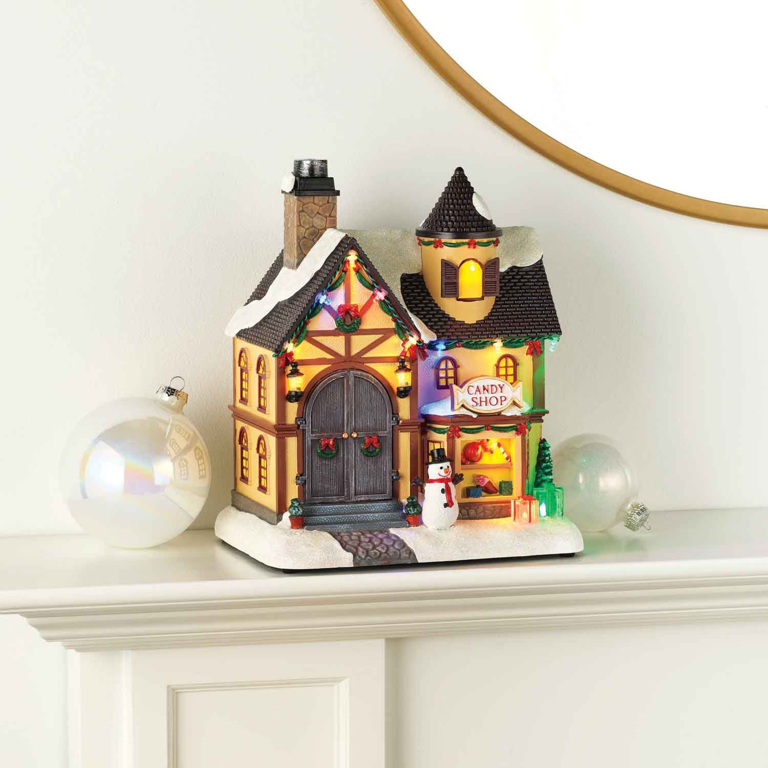 Step into Santa’s sweet shop! This delightful tabletop décor lights up and plays eight holiday tunes, as Santa pops out to welcome one and all to this sugar wonderland! Plastic. 9 ⅝" L x 6 ⅞" D x 10 ½" H. Imported.