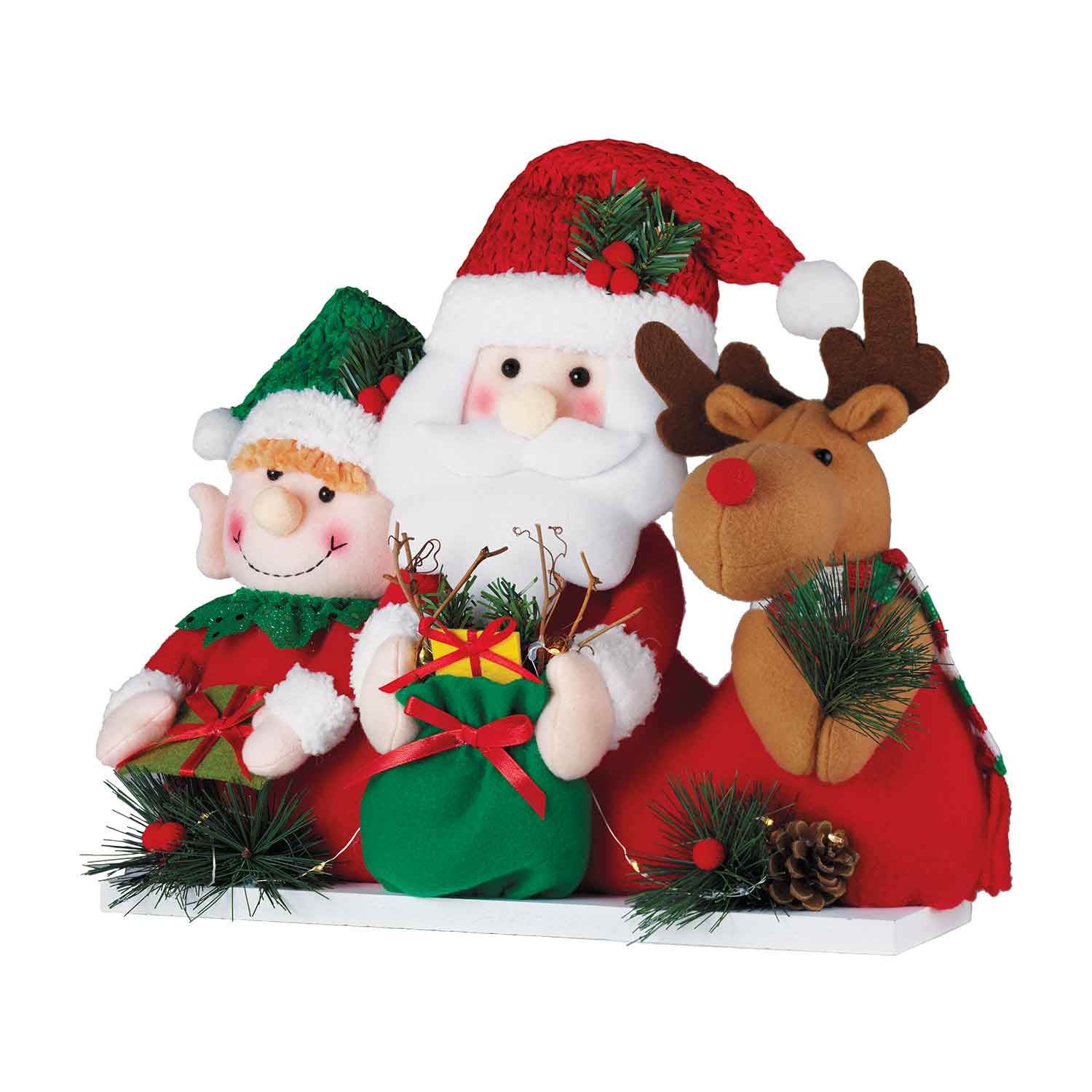 Our Christmas trio comes bearing gifts! Santa, Elf and Reindeer welcome the season with holiday cheer. Lights up. MDF, polyester. 14" L x 4" D x 12" H. Imported.