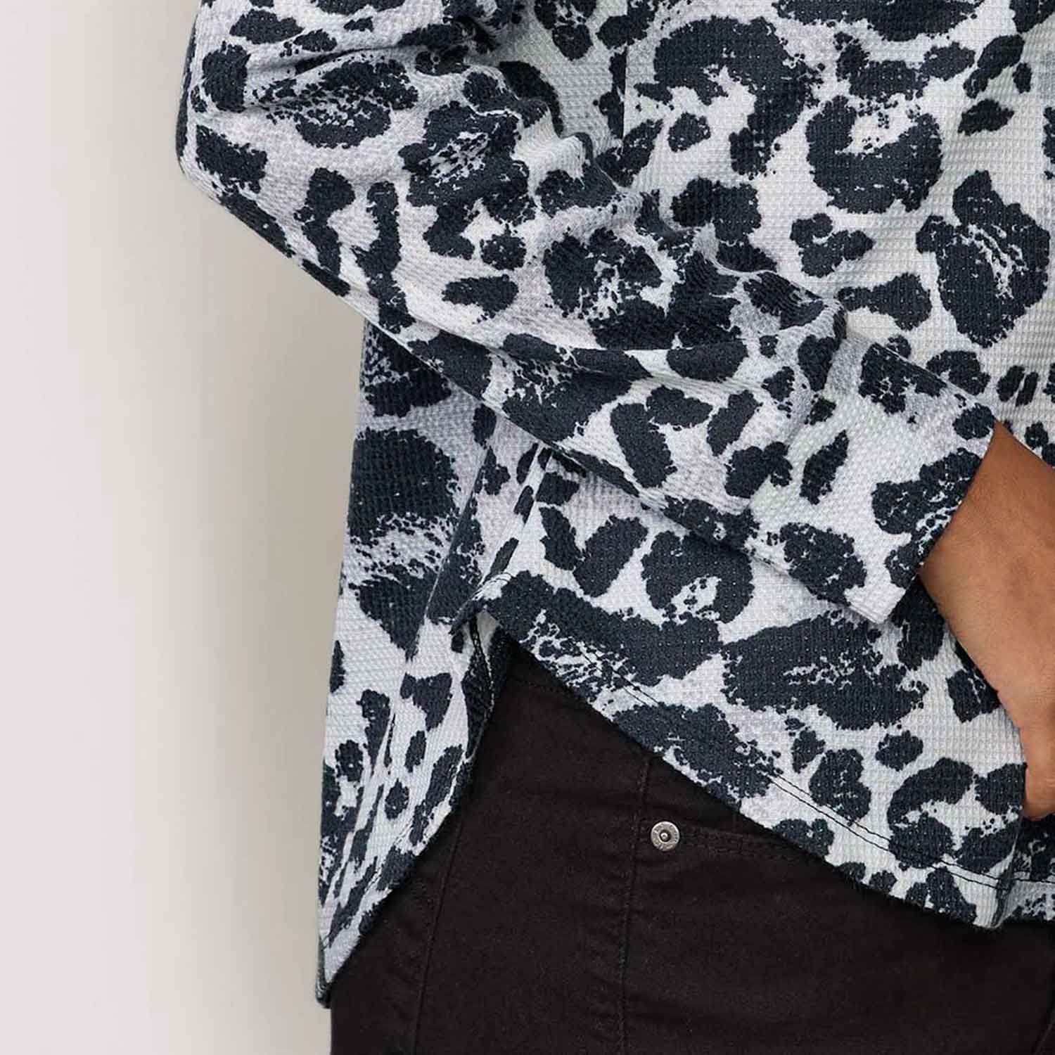 • Black and gray animal-print knit