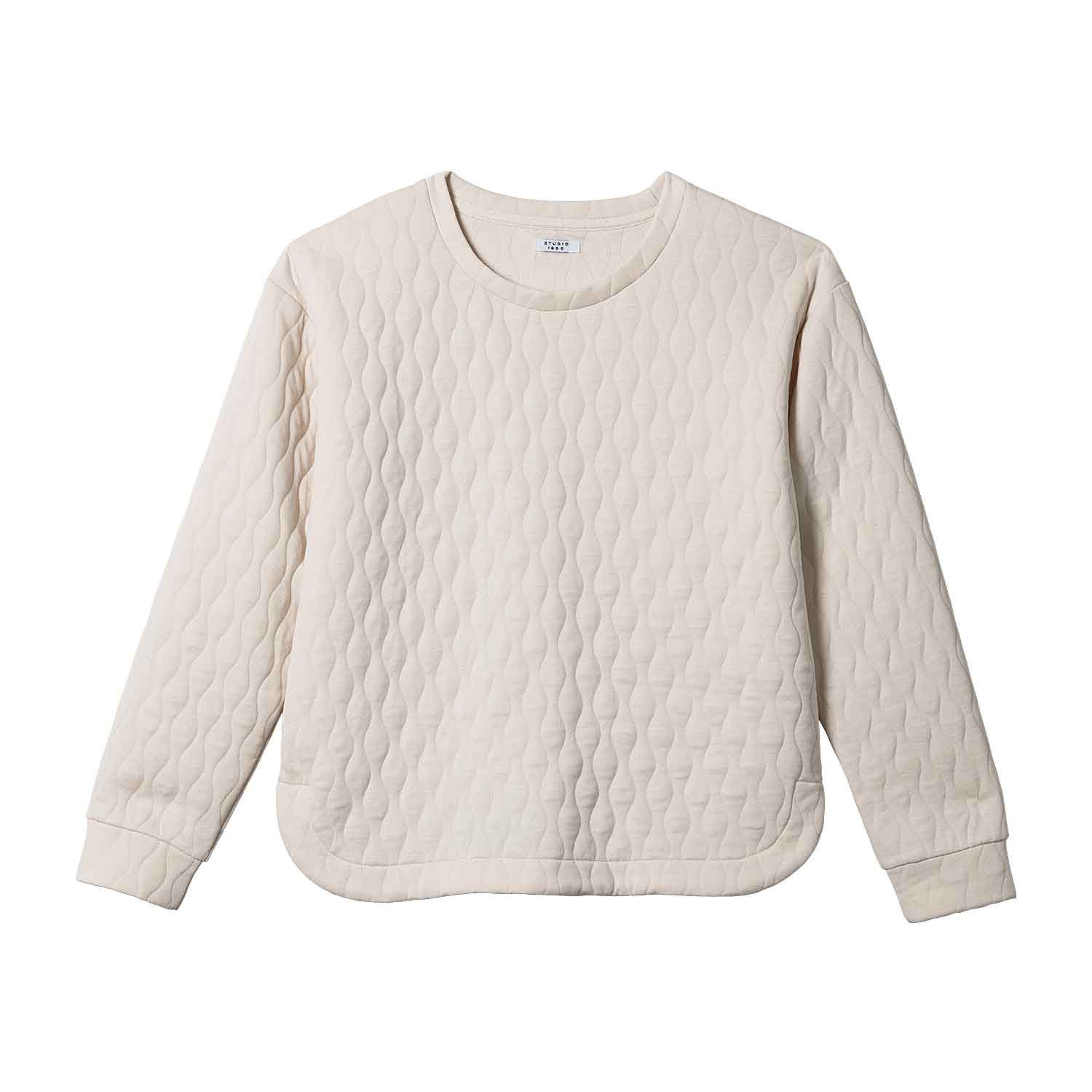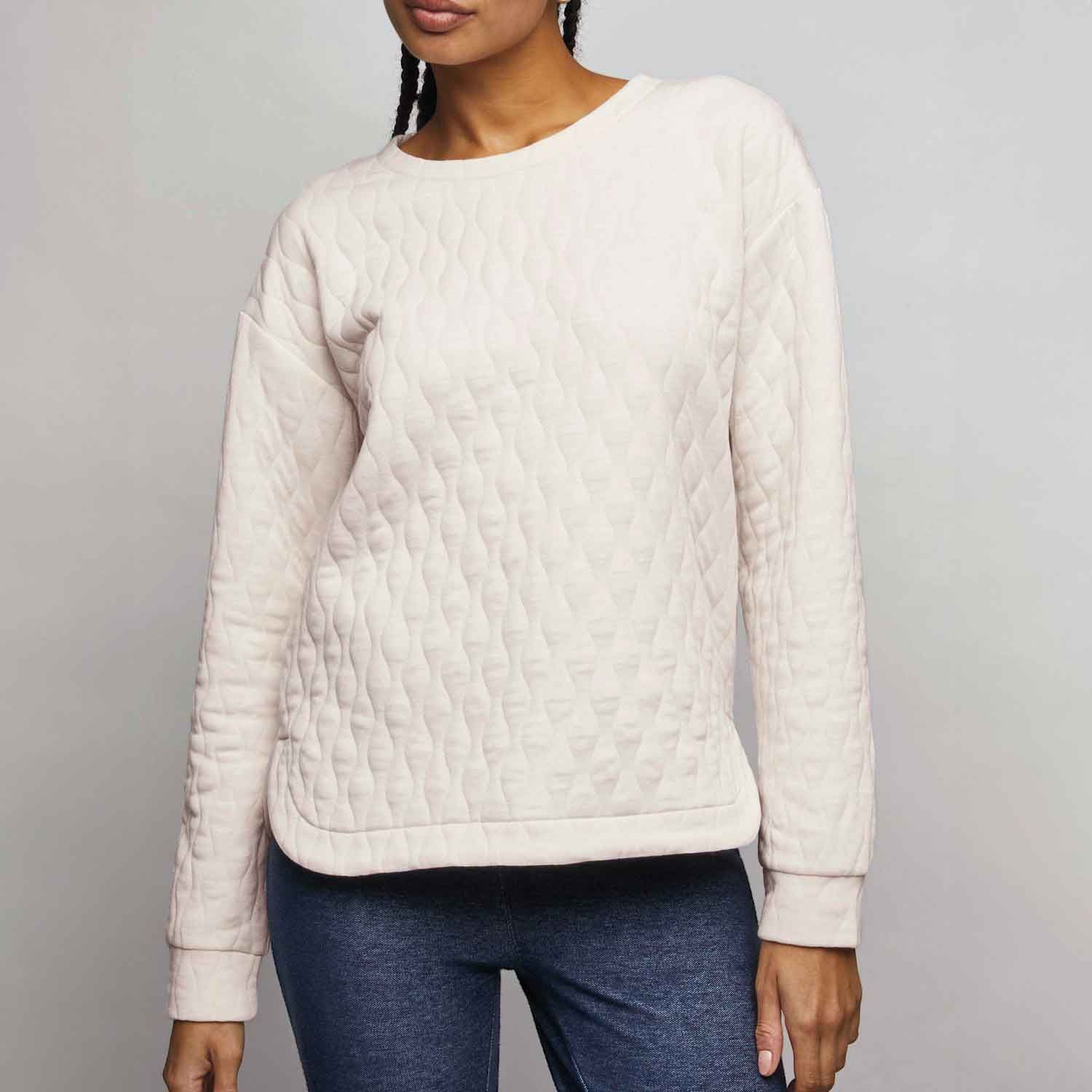 Allover soft quilting puts a fun spin on this roomy pullover. Featuring long sleeves with fabric cuffs and a rounded hem with side slits, this unique layer can be styled with jeans or work trousers. Center back length: 24" on M; 26" on 1X. Imported.