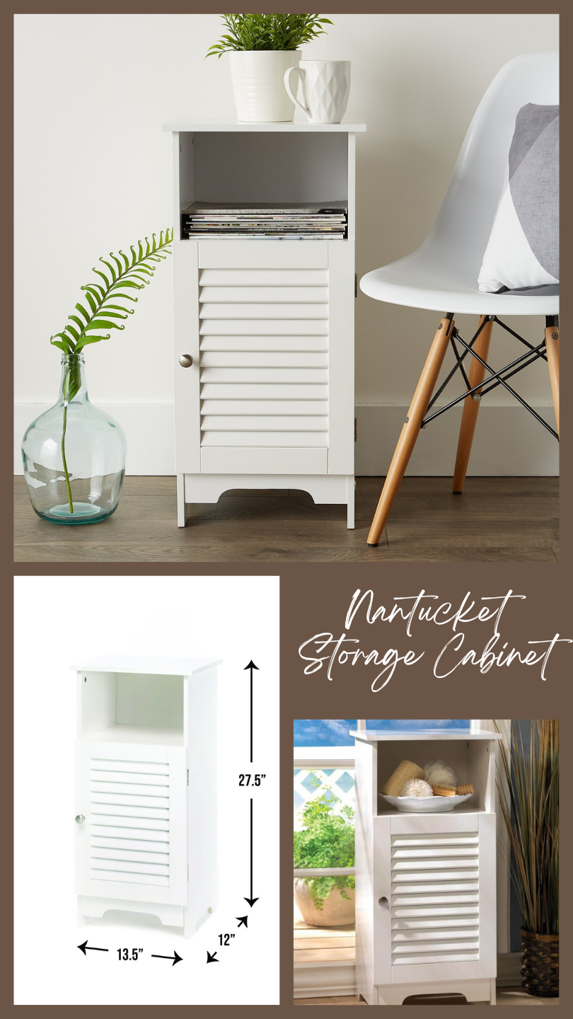 - Useful for a variety of storage need, this cabinet can also make an appealing end table next to sofa, beside the bed as a handy nightstand, or an attractive catch-all for a home office or bath!