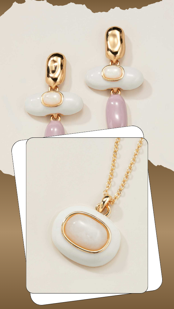 The perfect blend of modern sophistication and timeless charm, this necklace adds a refined touch to any outfit—whether layered or worn alone. Featuring a delicate goldtone chain and a striking oval pendant, this piece showcases a smooth white quartz stone encased in a glossy enamel border.