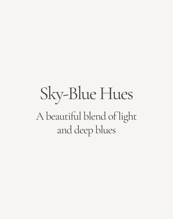 A medley of sky-blue hues is featured on a serenely beautiful statement necklace. Jewel-like glass beads varying from light to dark blue are set in a lustrous silvertone setting.