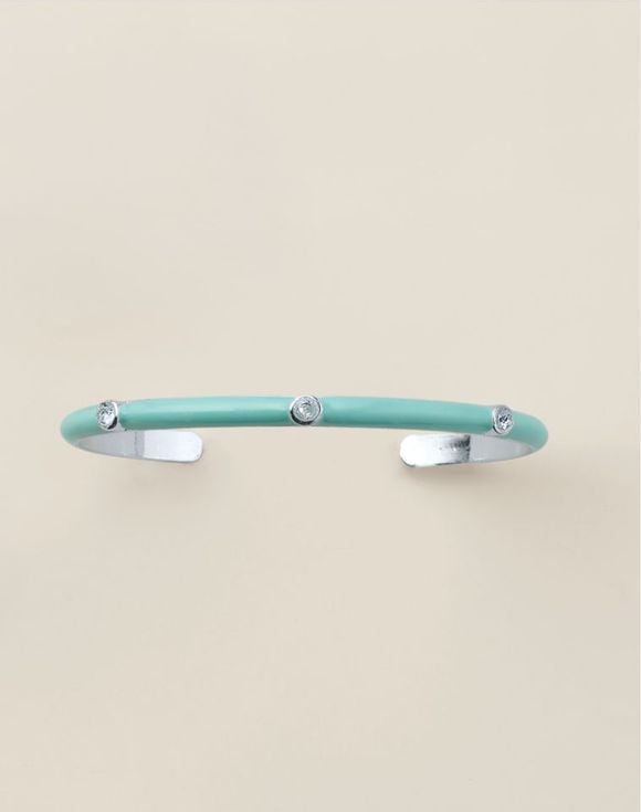Create a fun style moment with this vibrant trio of stackable cuff bracelets. Set of three bracelets feature mint, white and red colored enamel accented with sparkling CZ stones.