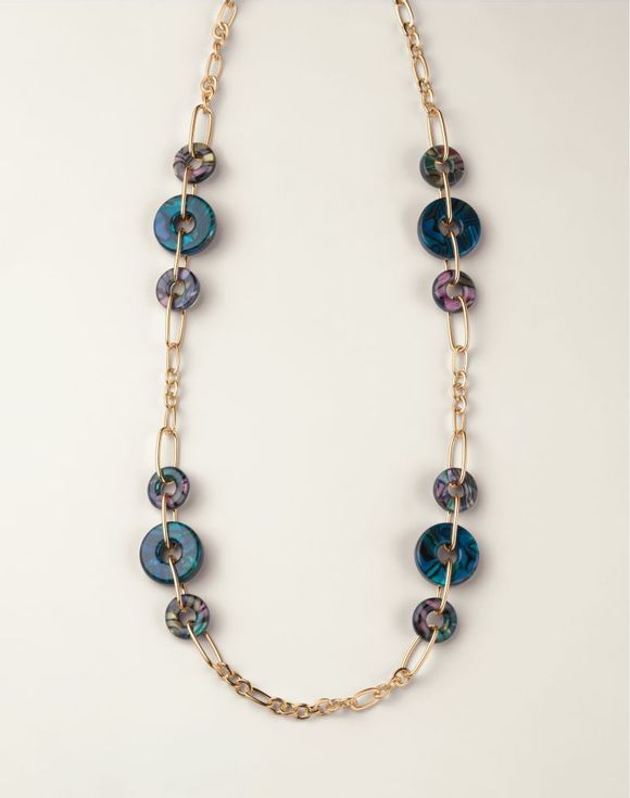 Add a splash of sea splendor to your everyday style. Classic goldtone links are adorned with abalone-like discs for a touch of ocean-inspired flair.