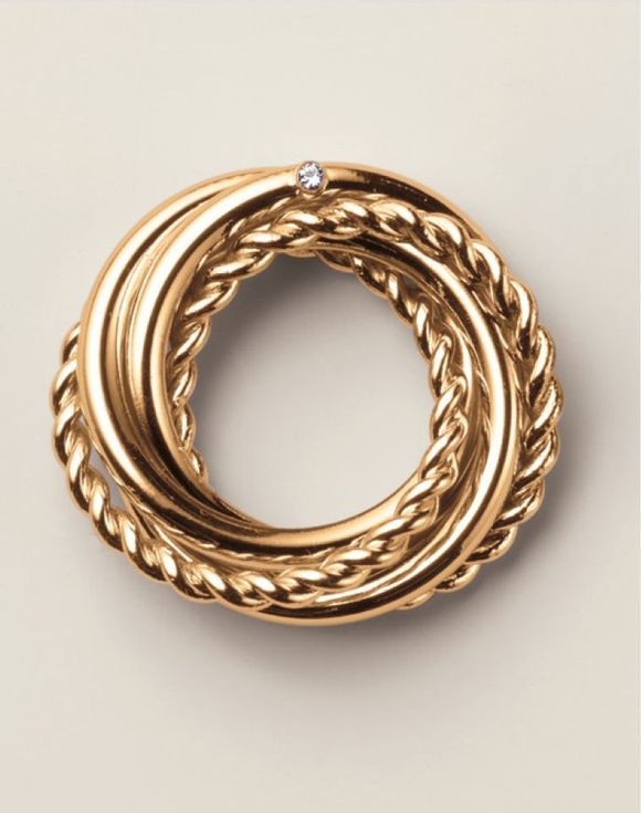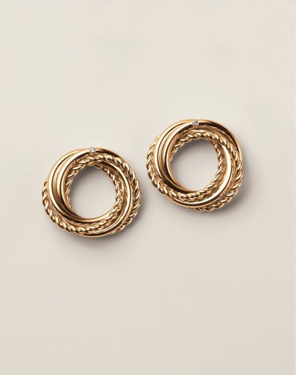 Round out your look with a bold touch of gold. Beautifully intertwined smooth and textured goldtone loops come together to create a captivating effect.