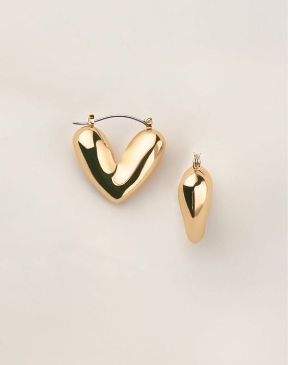 A lovely twist on classic hoop earrings, this organically shaped puffed heart design in goldtone glows with modern flair. Imported.