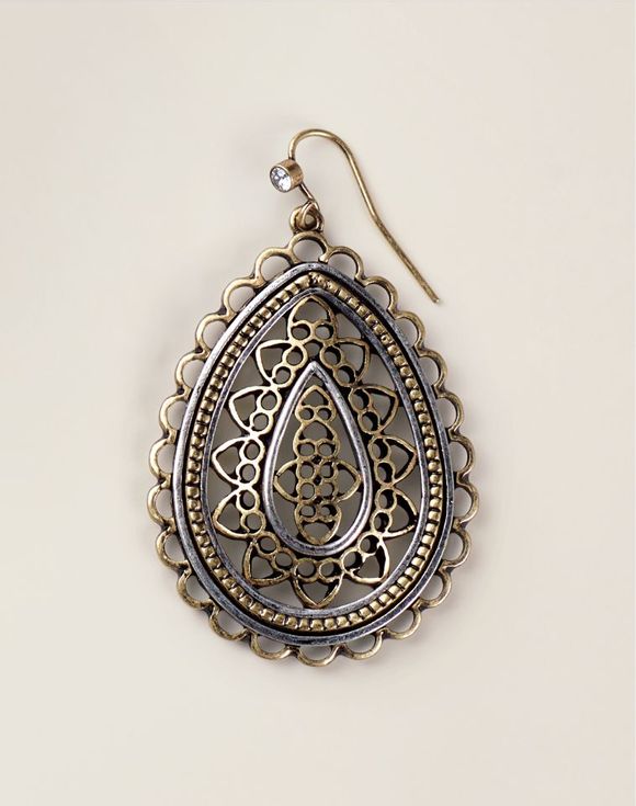 Delicate yet striking, these two-toned goldtone drop earrings feature intricate filigree detailing with Victorian flair.