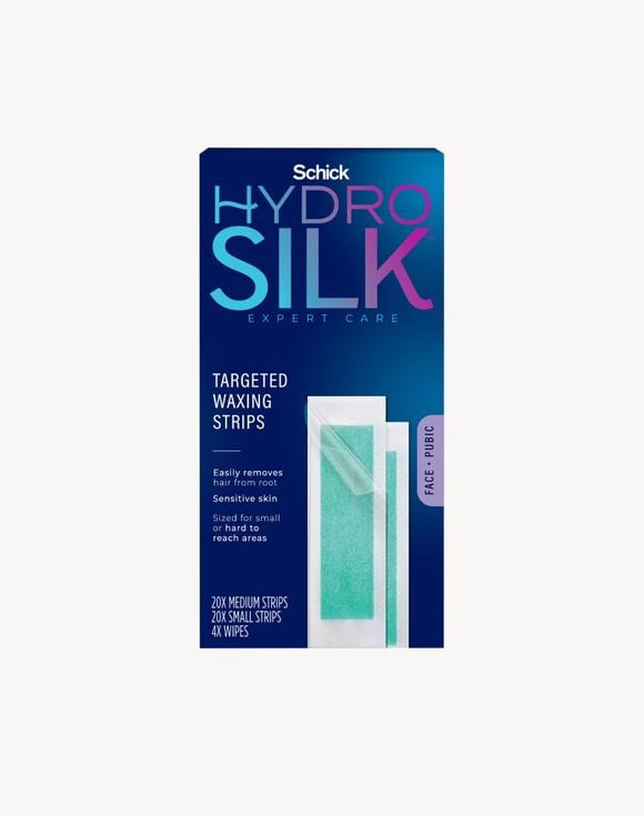 Schick® Hydro Silk® Targeted Waxing Strips are convenient strips that easily remove hair from the root and are perfectly sized for small or hard-to-reach places on the face, like upper lip and eyebrows, or the pubic and bikini area. They come ready to use—no warming or rubbing needed—and provide long-lasting* results. Formulated with seaweed extract and made from 98% natural origin** ingredients, this pubic and face wax kit is dermatologist-tested and specially designed for sensitive skin, making it perfect for use as a bikini wax, eyebrow wax, upper lip wax, and more.