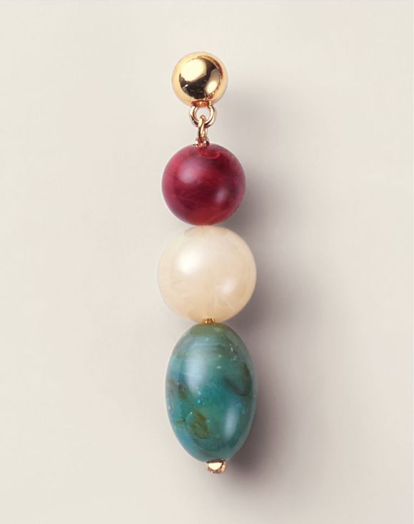 A drop of natural elegance. These dangling earrings feature polished beads in the colors of the season. Topped with a gleaming goldtone bead, its impressive length is sure to make a statement.