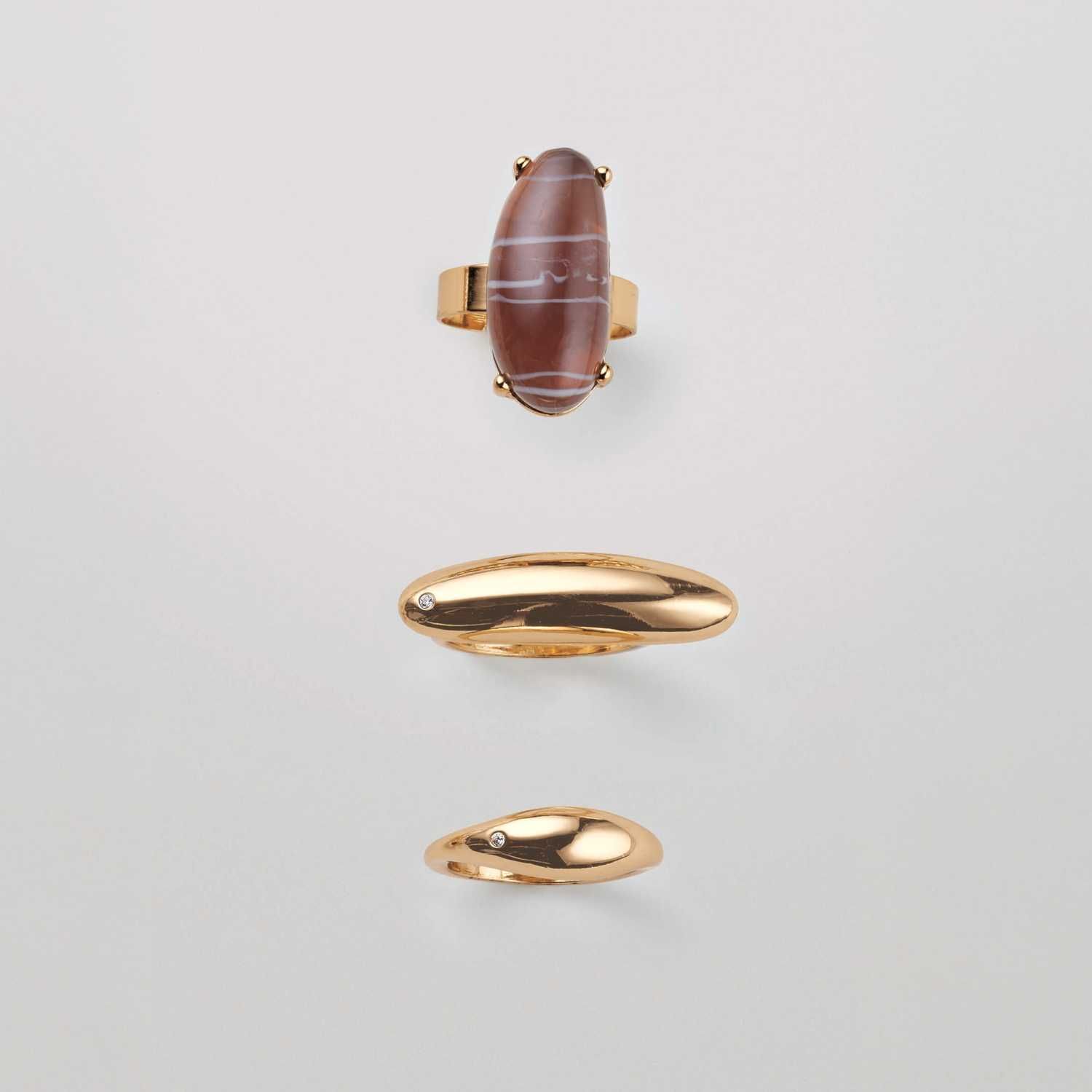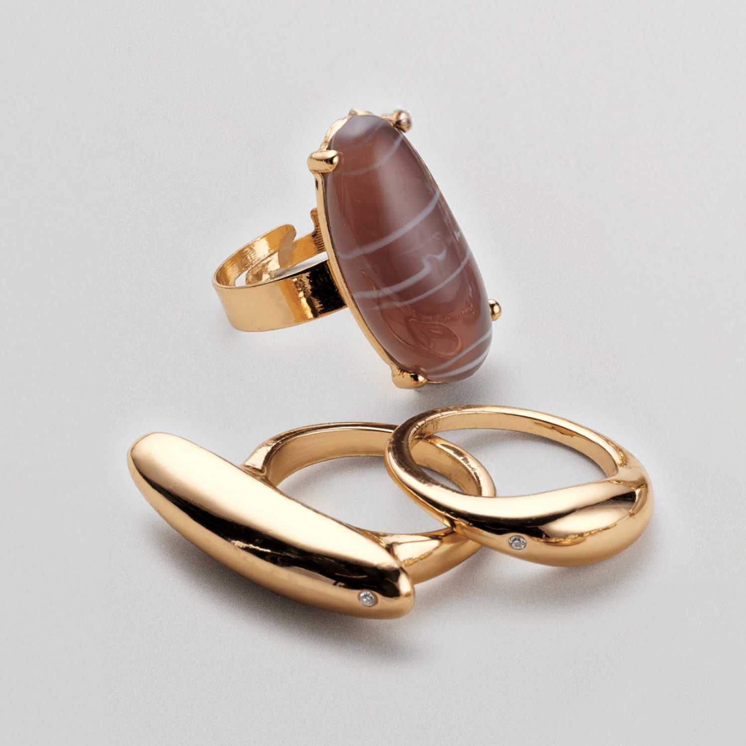 Celebrate your personal style with a modern set of three goldtone rings that you can mix or match as you please. Matching necklace, earrings and bracelet set also available.