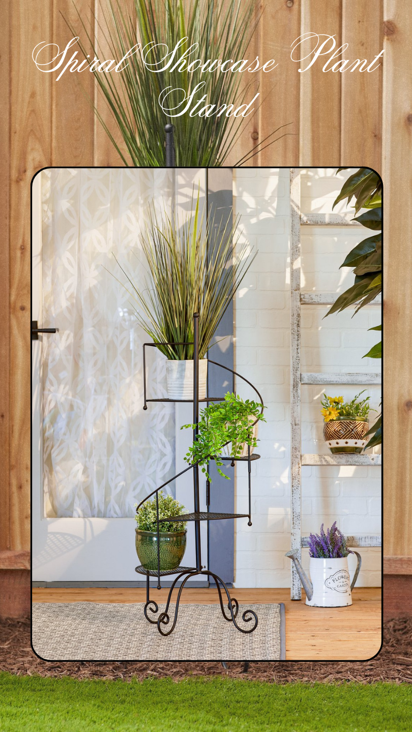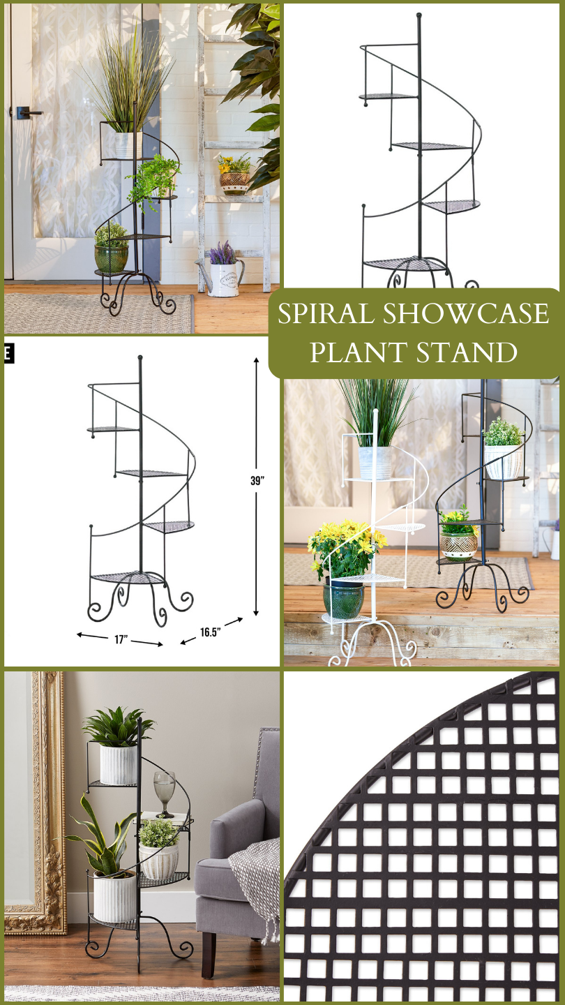 -Give four of your favorite plants a supremely stylish showcase! This metal plant stand features four mesh platforms, a curved "banister" and four scrolling feet below. Standing at more than three feet tall, it's a grand way to exhibit your green thumb. #10015964