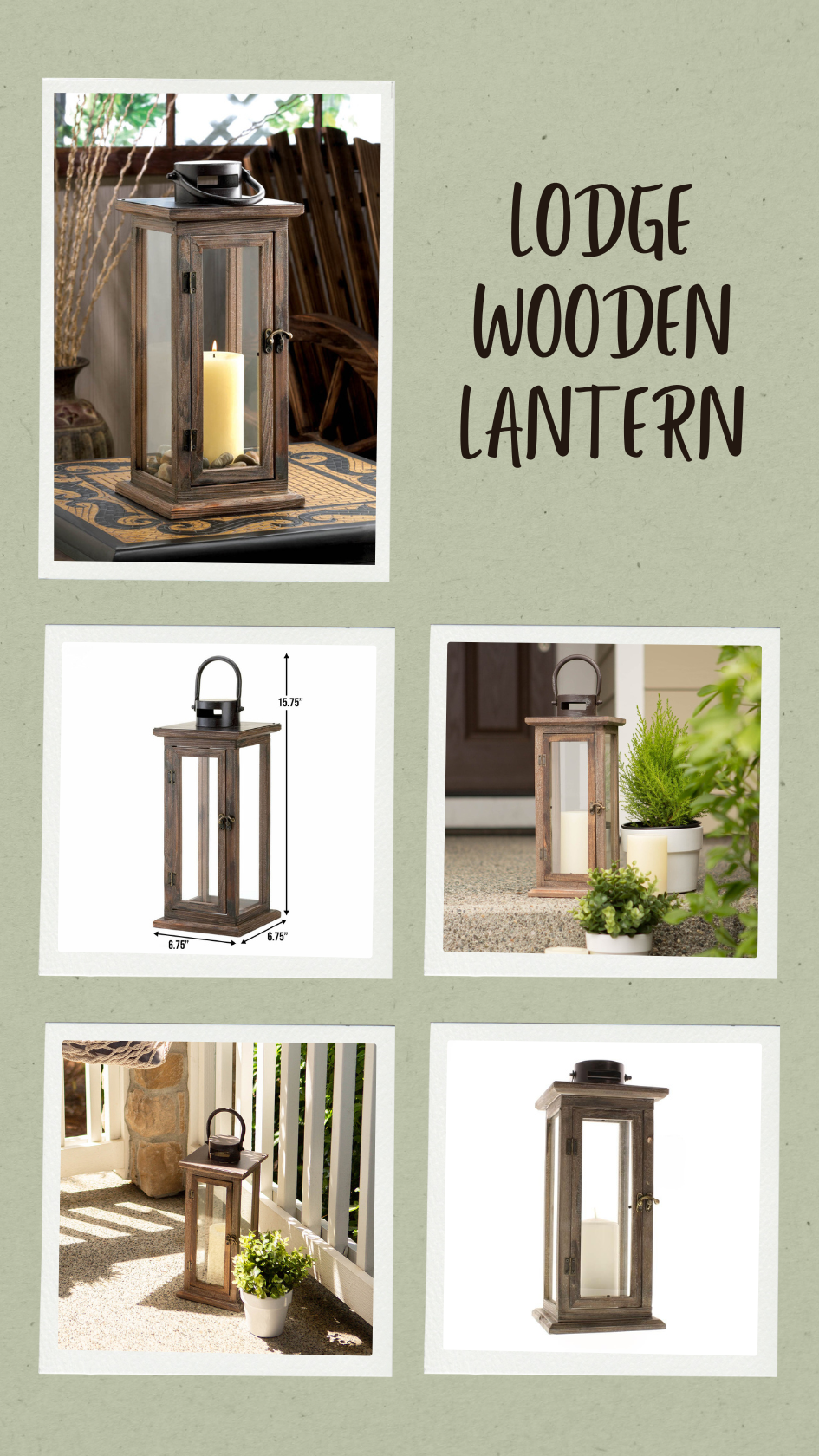 -The elongated glass panels let the light from your candle shine bright. This lantern looks great on your tabletop or hanging from its sturdy top loop. Wood, metal and glass combine to create the ideal candle lantern, with a design that is equally familiar and fantastic. This inspired lighting accent features a stained wood framework, a fascinating top loop for hanging, and a vintage-inspired metal door latch. #10015963